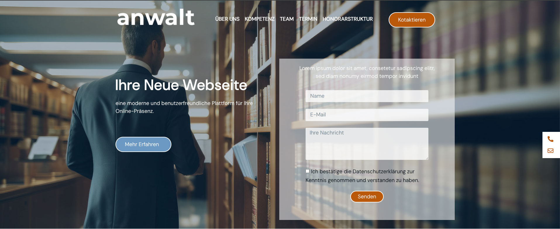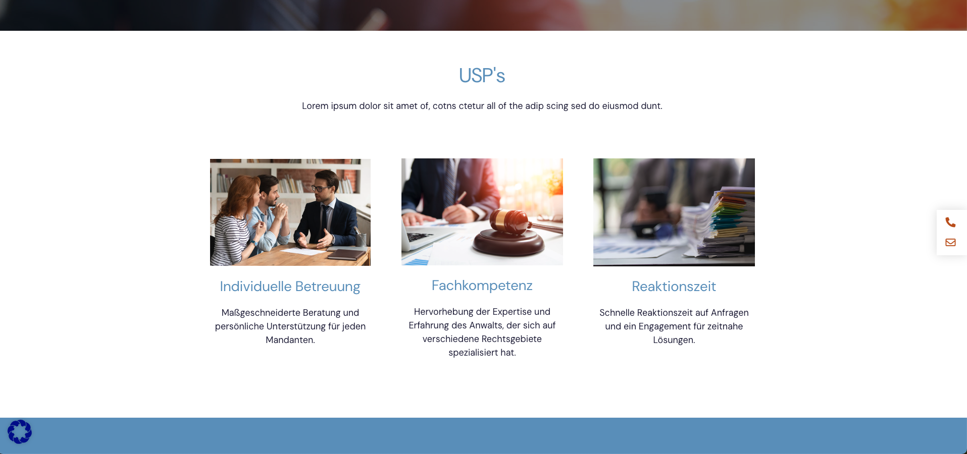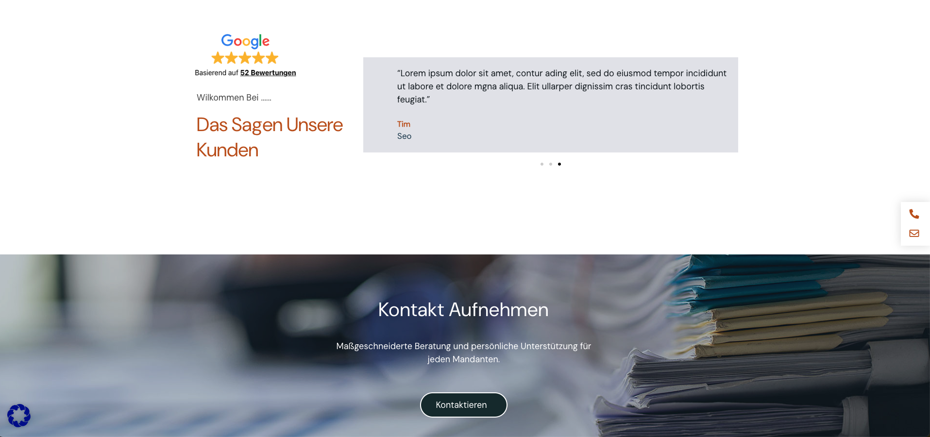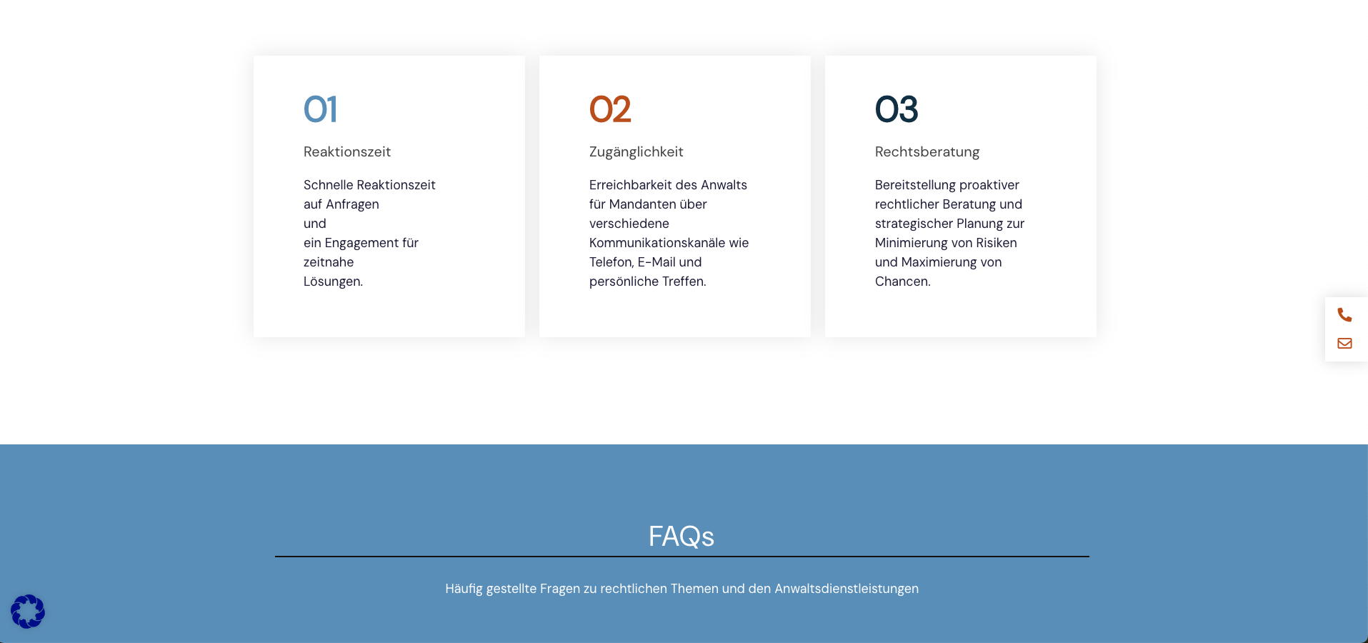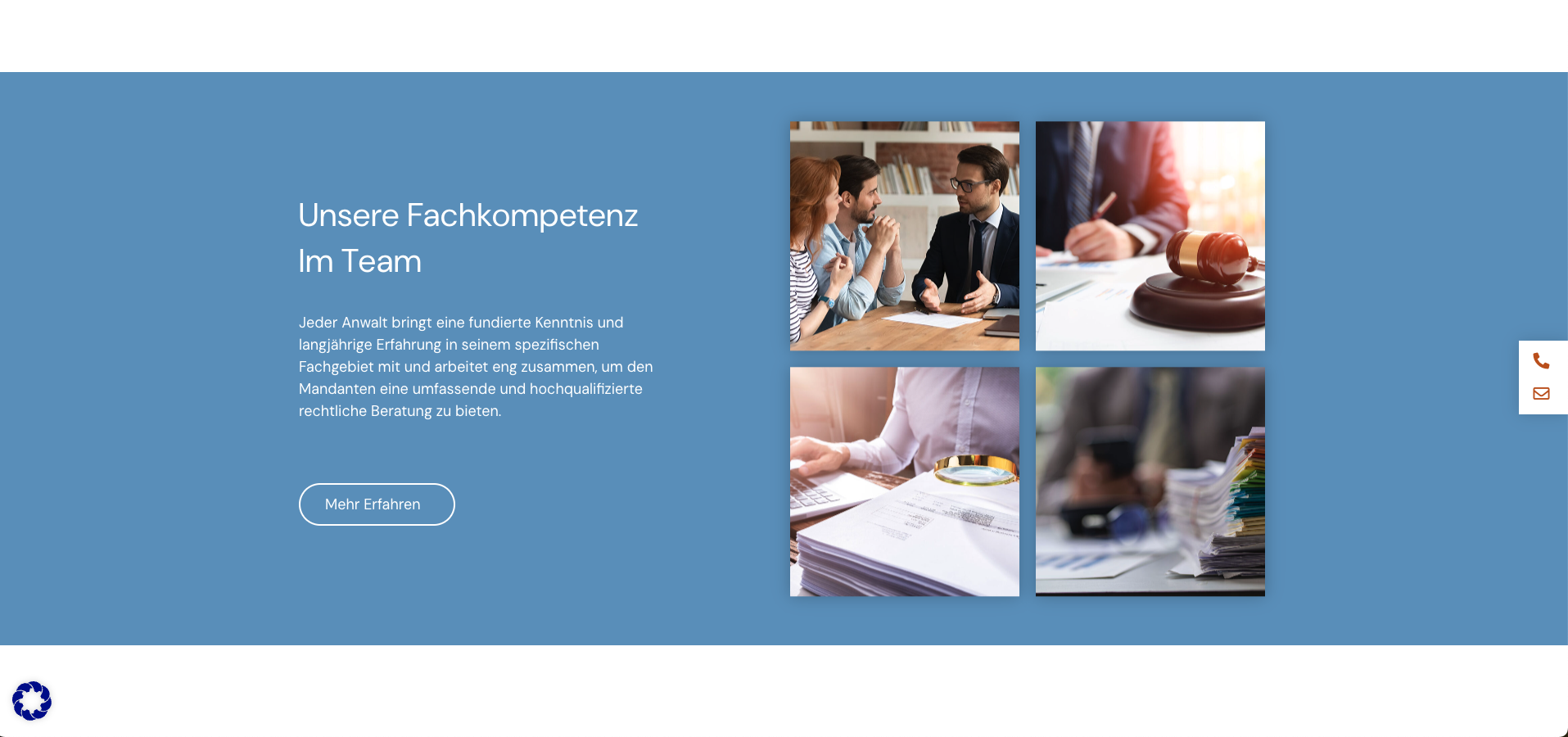 Jeder One-Pager wird von uns individuell programmiert, um schnelle Ladezeiten, eine benutzerfreundliche Navigation und die optimale Darstellung auf verschiedenen Geräten zu gewährleisten. Zudem können wir so auf Sie angepasste Funktionen integrieren, wie Kontaktformulare und Tools, worüber Ihre Mandaten Termine bei Ihnen buchen können. So wird eine nahtlose Interaktion mit Ihren Mandaten ermöglicht.